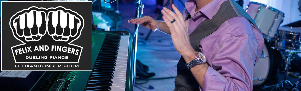Felix and Fingers Dueling Pianos is a high energy, all request sing along show for all ages. This interactive act brings together music and comedy for a night you'll be laughing about for weeks! From John Lennon to John Legend, Beach Boys to Beastie Boys, Felix and Fingers will play anything. Be ready with your favorite requests and prepare to laugh, sing, and dance with this one of a kind dueling pianos show.
