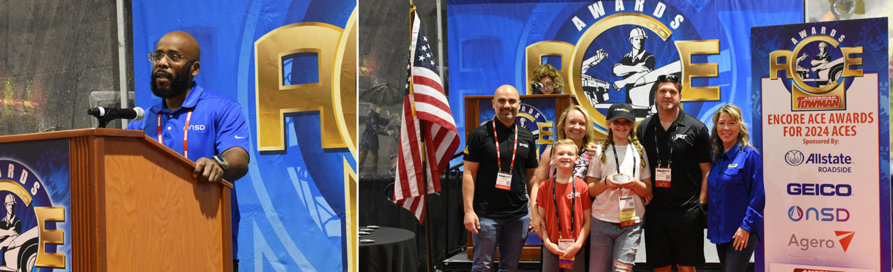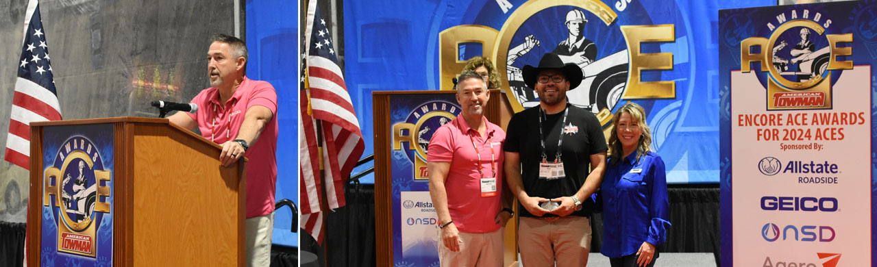 your fellow Tow companies who were nominated by motor clubs and call providers for being in the top 1% of towing operations for service excellence, reliability and professionalism, as they receive the prestigious Towman ACE award. Recipients are presented with the exclusive ACE Buckle Award by representatives of Allstate Roadside, GEICO, NSD and Agero.